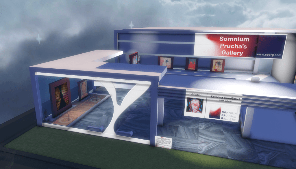 Today, curiosity led me to a very special Somnium Space parcel: the Somnium SOPRG Gallery, an art destination for lovers of art from all walks of life. I was instantly inspired and captivated by the amazing real works of art in the space. Somnium Prucha’s Gallery is a museum with art created by real artists and digitized into NFTs for purchase. This gallery showcases stunning artwork that intrigues any visitor with its authenticity and clever way of supporting artists while providing inspiration.