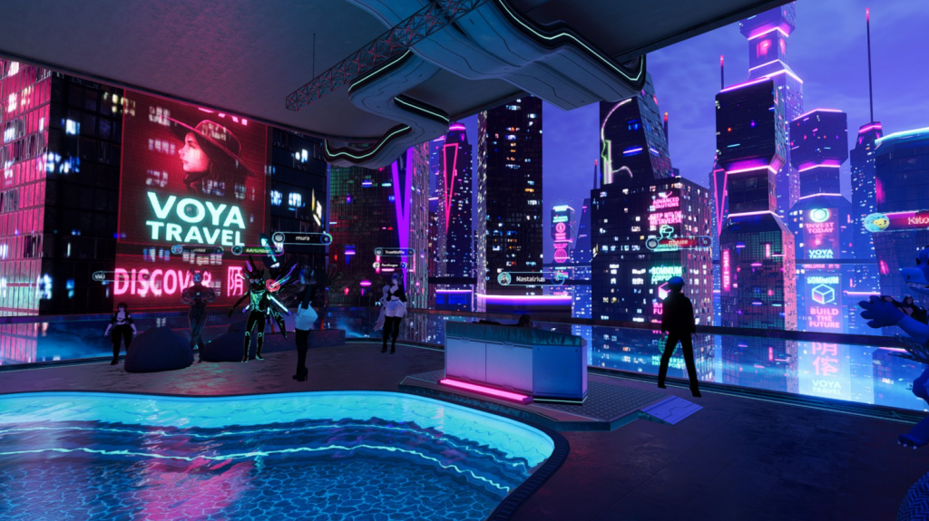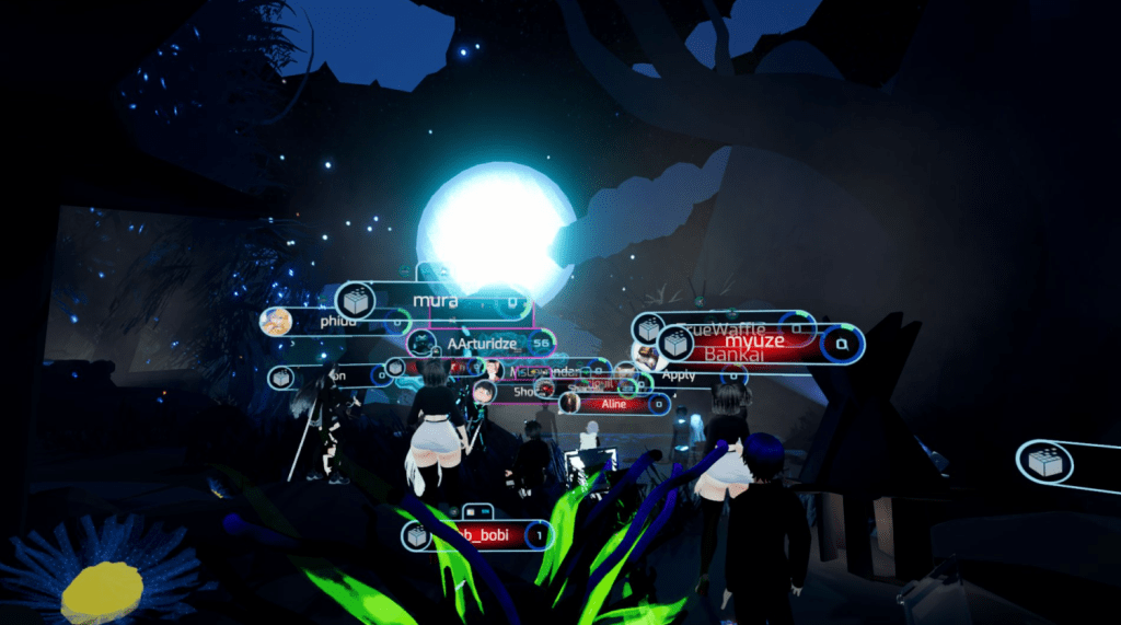 The tour also went past some of Somnium’s most iconic user-built worlds, each a testament to the platform’s boundless creativity. They soaked in the serene vibes of Libelulle’s Tsuki Onsen (as featured in our recent Somnium Times article), marveled at the futuristic glow of the Neon Bunker, and chilled in the laid-back Apartment 420 (check out our review here). These visits weren’t just sightseeing – they highlighted how Somnium’s persistent worlds evolve over time.